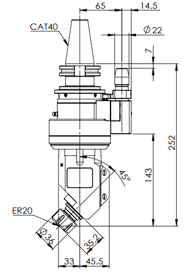 ◎?CAT40-ER20 45° Angle Head (AHD Type)